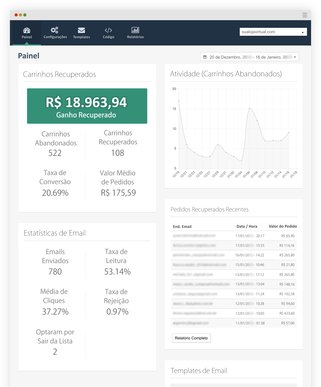 Nosso software é executado automaticamente em seu site trazendo de volta através de emails personalizados os visitantes que não concluíram a compra (carrinho abandonado).